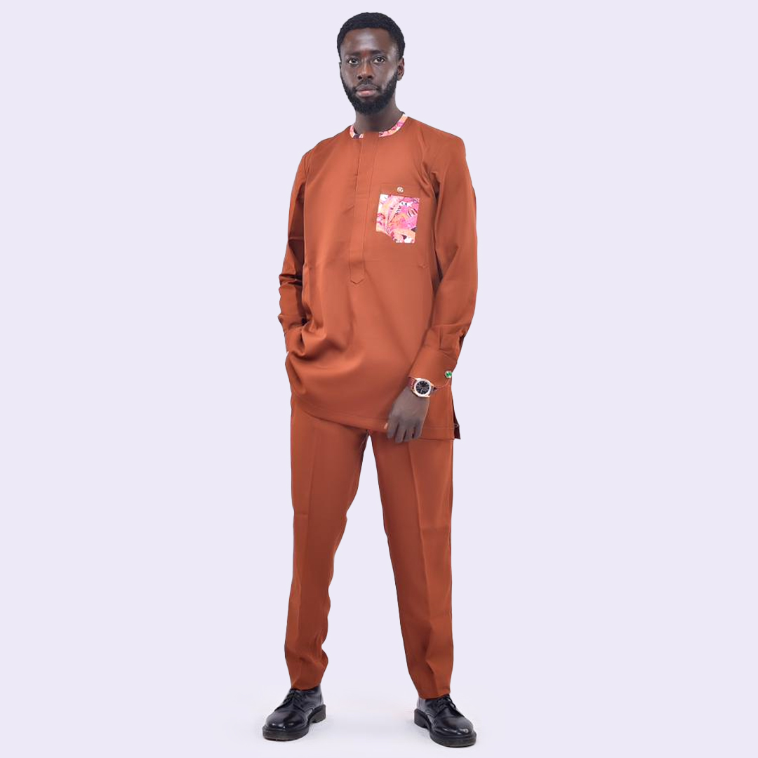 Cette tenue pour homme incarne le mariage parfait entre modernité et authenticité africaine. Conçue avec un tissu de qualité supérieure, elle se distingue par sa coupe raffinée, son confort optimal et ses détails uniques, comme une poche décorative pour une touche d’originalité.